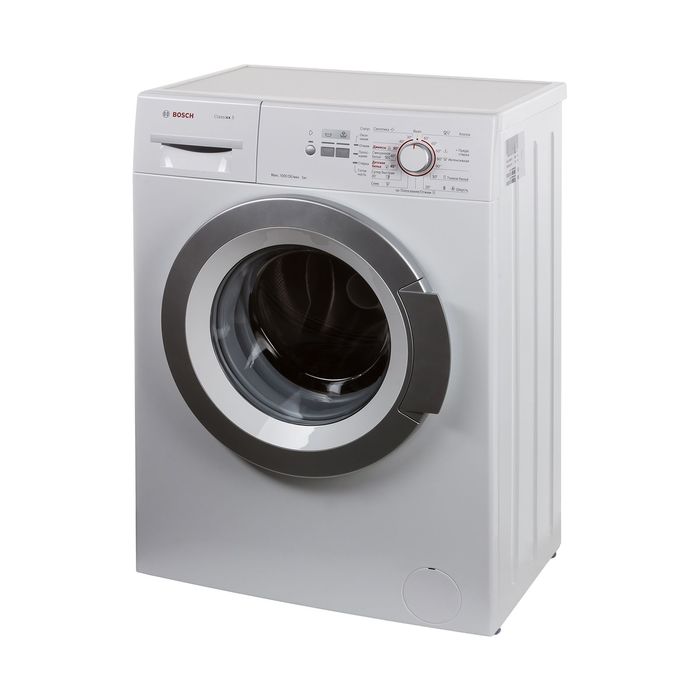 Надежная и простая модель от компании Бош — BOSCH WGL 20060 OE. Она имеет загрузку до 5 килограммов, все необходимые режимы и скорость отжима до 1000 оборотов в минуту. В этом приборе предусмотрены все современные защитные функции. Весит он 60 килограммов и имеет размеры 85×60×40 см.