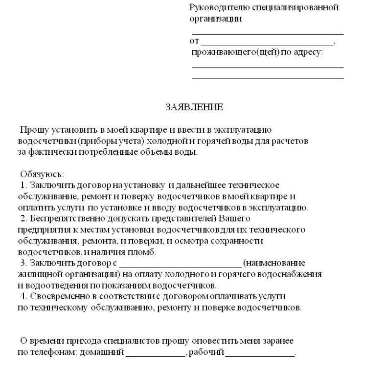 Как оформляется заявка на установку нового счетчика