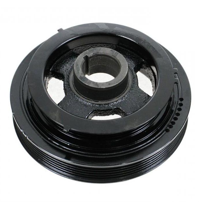 Шкив коленвала служит для передачи вращения от коленвала к таким важным узлам автомобиля, как генератор, гидроусилитель и кондиционер. Кроме этой функции, в инжекторном двигателе на шкиве демпферного типа расположены специальные зубцы, которые считывает датчик коленвала.